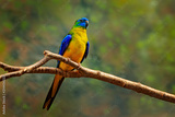 Turquoise parrot, Neophema pulchella, beautiful blue bird from Eastern Australia. PArrot in the nature habitat, sitting on the branch. Wildlife scene from nature.