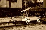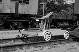 Old historical train. Metal locomotive construction.