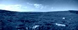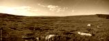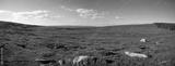 panorama sur un plateau verdoyant et désert avec juste quelques rochers en premier plan