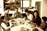 Multi Generation Family Enjoying Meal Around Table At Home Together