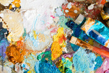 Abstract art background, oil painting on canvas, multicolored bright texture, fragment of artwork, spots of oil paint, brushstrokes of paint, modern art, contemporary art