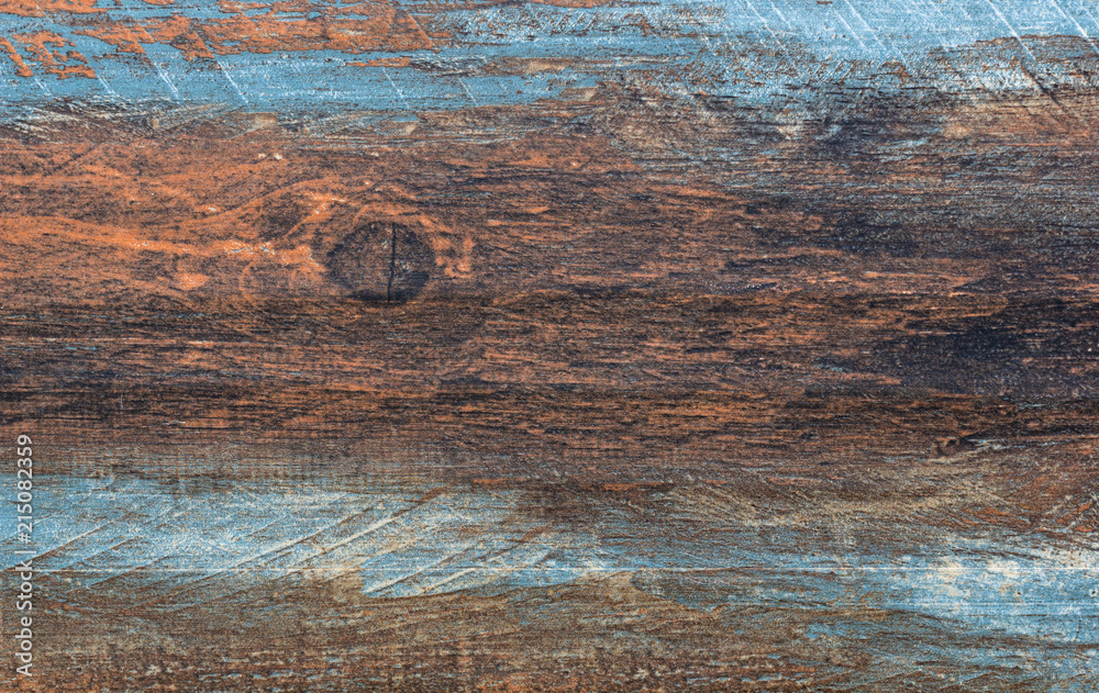 Brown, turquoise, and teal wood board - Vintage wood background - Old horizontal board surface