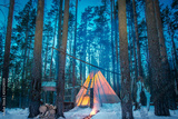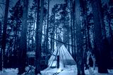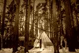 The wigwam. House of American Indians. Residence Tipi. Snow-covered forest. Living in the forest.