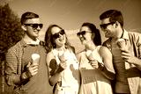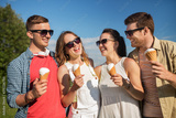 friendship, leisure and people concept - group of smiling friends with ice cream outdoors in summer
