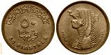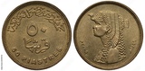 Egypt Egyptian coin 50 fifty piasters 2005, country name and face value in Arabic and English, bust of Cleopatra,