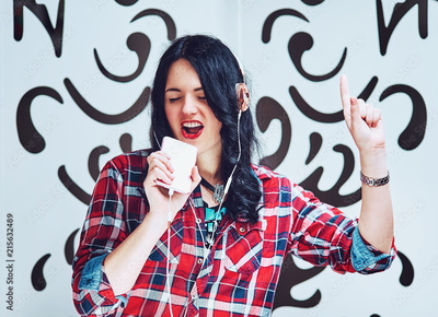 Beautiful woman listening to music with headphones