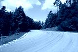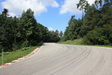 Kręta asfaltowa droga przez las, tor wyścigowy w Górach Świętokrzyskich, Miedziana Góra