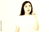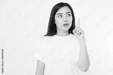 Young asian girl have good idea. Happy smiling woman isolated on white background. Copy space. Template and blank summer t shirt.