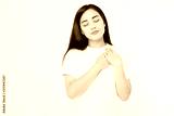 Young asian woman touching heart isolated on white background. Feelings and love concept. Valentine day. Copy space