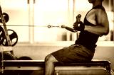 young man making low cable pulley row seated.Concept of healthy lifestyle. bodybuilder in the gym.