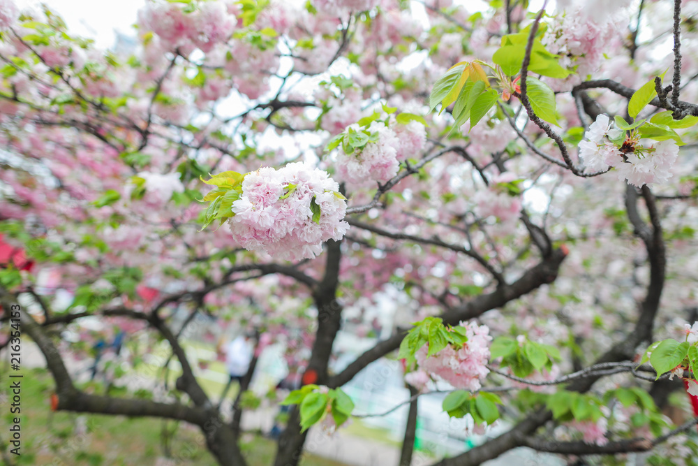 Sakura. Cherry blossoms japan. Pink spring blossom background.