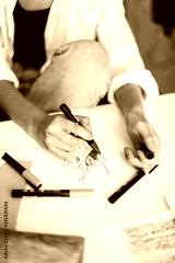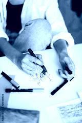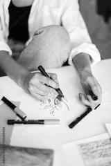 Close up girl at the desk using colorful felt-tip pens while drawing at home
