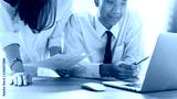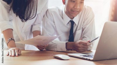 team working together. Modern workplace desks and computers, documents graphs showing the results of their successful.