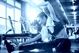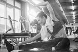 Beautiful young woman warming up in gym