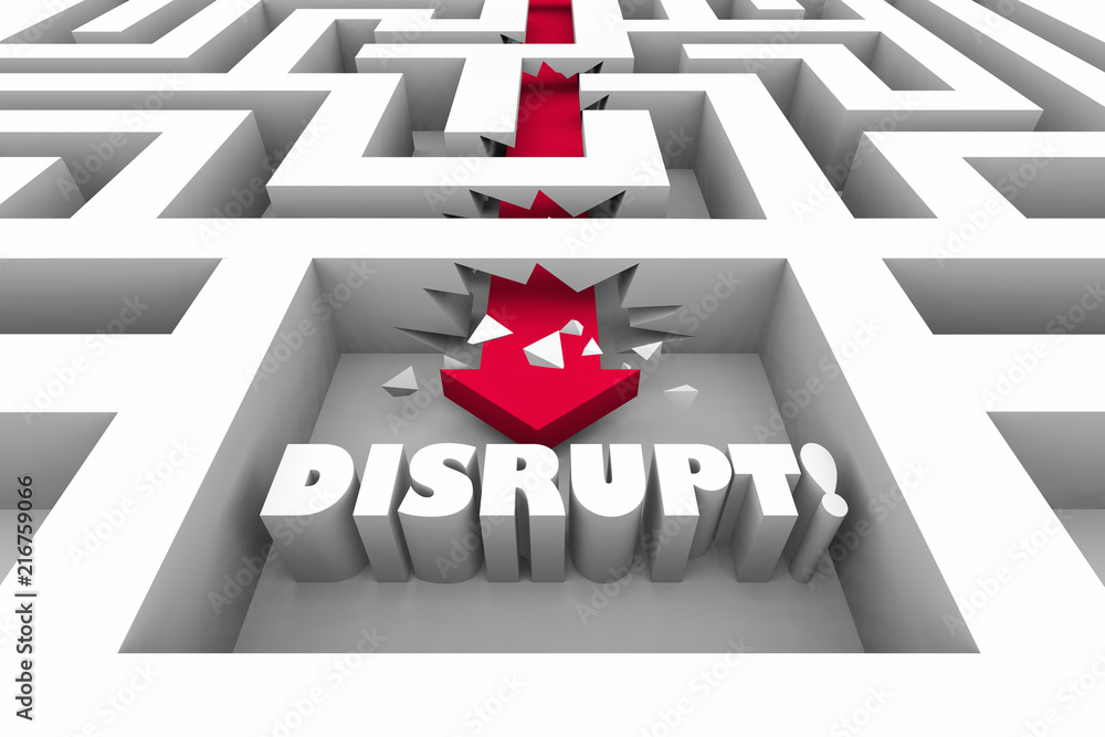 Disrupt Maze Break Through Walls Innovate Change 3d Illustration
