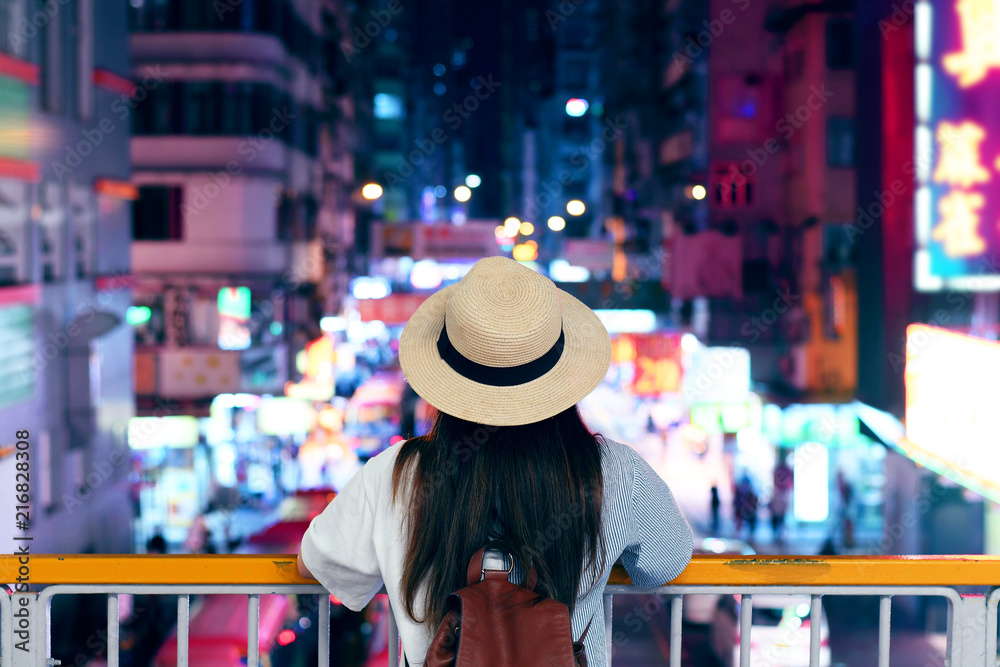 Tourist is enjoy traveling in famous night market in Mong Kok, Hong Kong.