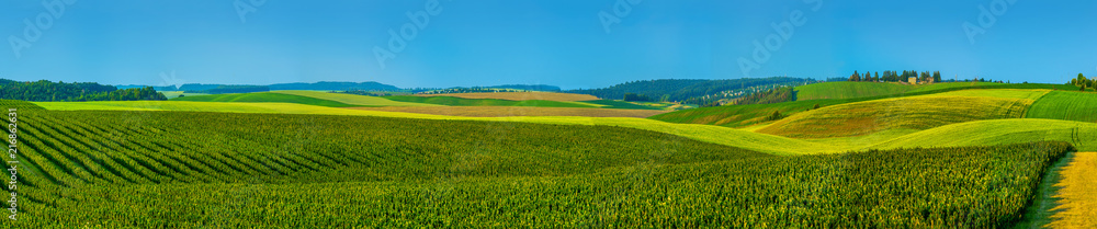 panoramic view of black currant plantations and agricultural lands