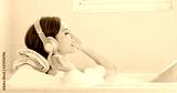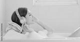 woman listen music in bathtub