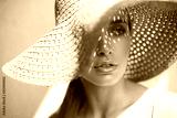 Close-up Fashion woman portrait of young pretty trendy girl in hat posing at the city, summer street fashion.