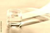Glass of water on pastel blue. One shot for time. Close up. Copy space. Water balance for healthy.