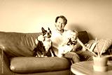 Young father with baby daughter on sofa at home