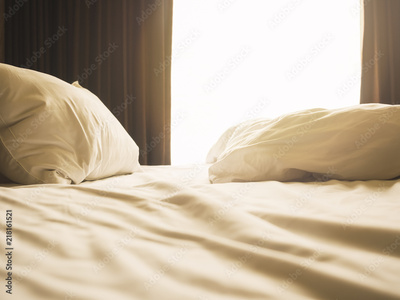 Bed sheet and pillow messed up in the morning Bedroom Hotel
