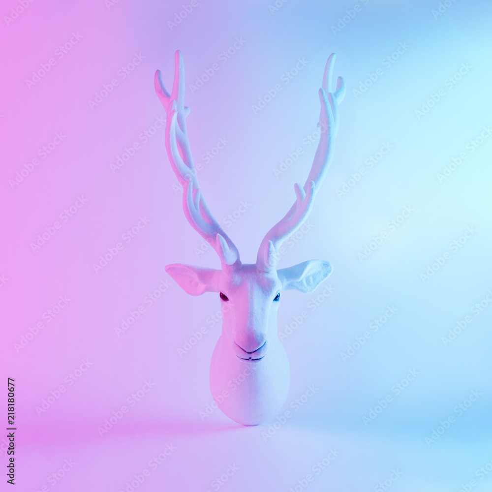 White Santa's reindeer in vivid gradient neon colors. Christmas minimal background concept.