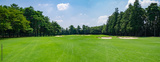 Panorama view of Golf Course with fairway field in Chiba Prefecture, Japan. Golf course with a rich green turf beautiful scenery.