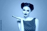 Pinup woman beauty portrait vintage retro girl model in polka dot dress