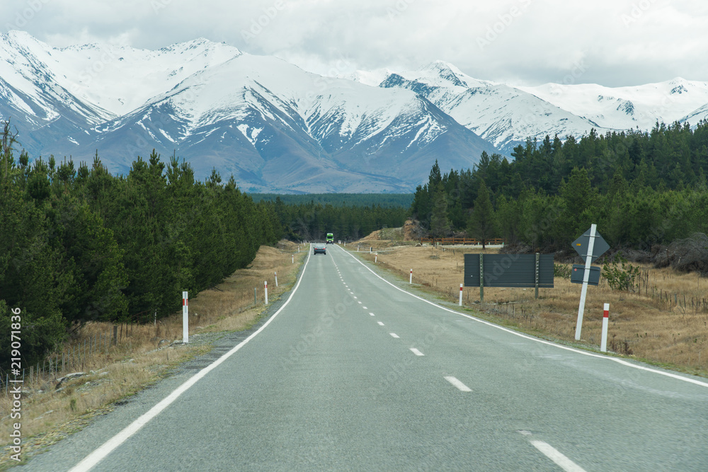 Road to Aoraki/Mount Cook the highest mountains peak in New Zealand.