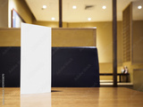 Mock up Menu frame on Table in Bar restaurant cafe Background