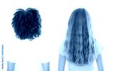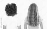 Caucasian and afro woman hair type set back view isolated on white background. African curly hairstyle, ombre and wavy healthy blonde hair. Shampoo for any hair type concept. Copy space