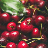 Fresh sweet cherry texture, wallpaper and background. Wet sweet cherries, selective focus, square crop. Summer food or local market produce concept