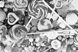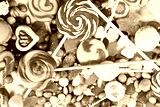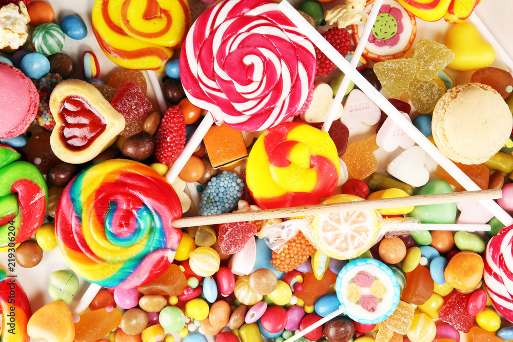 candies with jelly and sugar. colorful array of different childs sweets and treats.