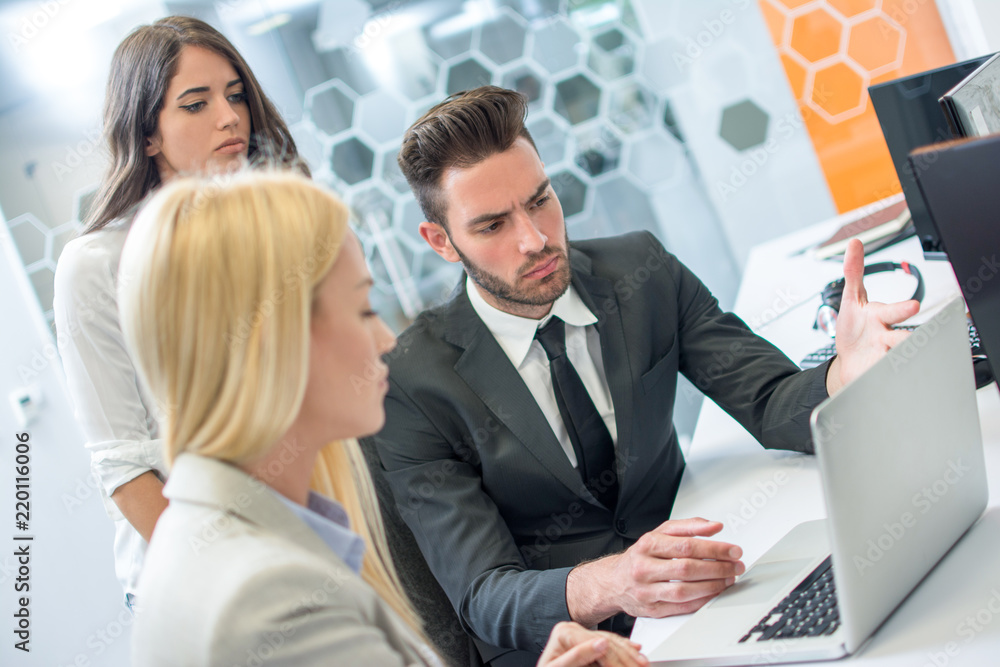 Portrait of young woman applying lipstick on her lips at beauty salon