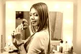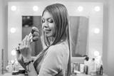 Portrait of beautiful teenage girl holding make up brushes. Home, teen, make-up, skin-care concept.