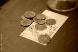 Polish currency waiter tips on a restaurant receipt. Zloty.