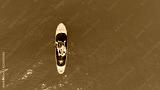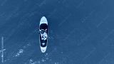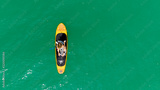 une jeune femme sur son paddle jaune au milieu d'un lac vert