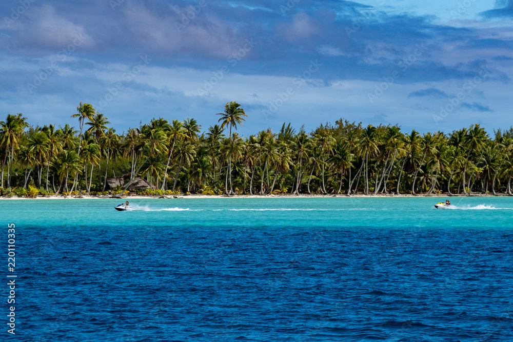 jet ski in french polynesia coconut beach crystal water