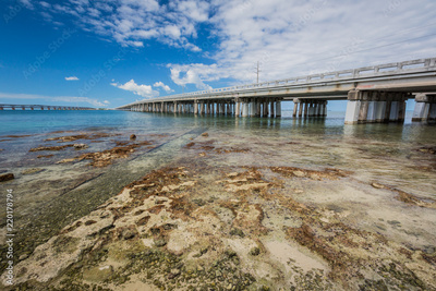 Seven Mile Bridge crosses water in Florida Keys.