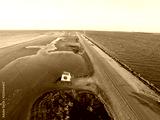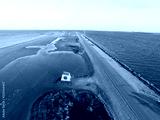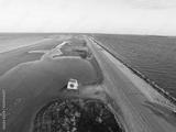 Aerial view famous Texas City Dike, a levee that projects nearly 5miles south-east into mouth of Galveston Bay. It was designed to reduce the impact of sediment accumulation along the lower Bay
