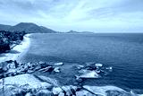 High angle view beautiful nature landscape of Lamai beach from Hin Ta Hin Yai viewpoint coastline near the blue sea under the summer sky of Koh Samui island, Surat Thani province, Thailand
