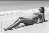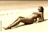 Young pretty slim brunette woman in sunglasses getting suntan on