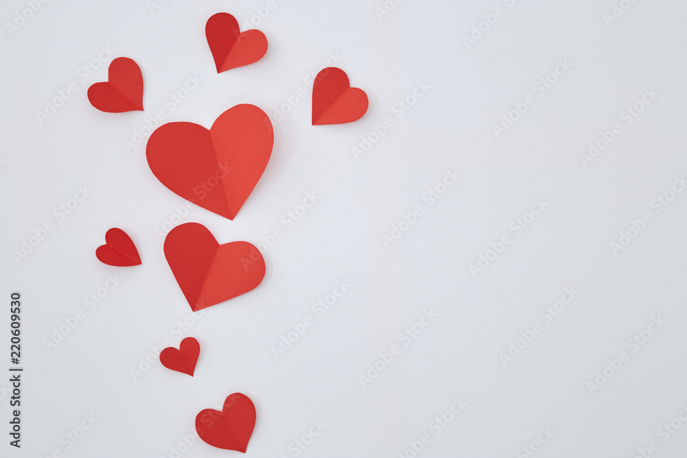 Red paper hearts on canvas
