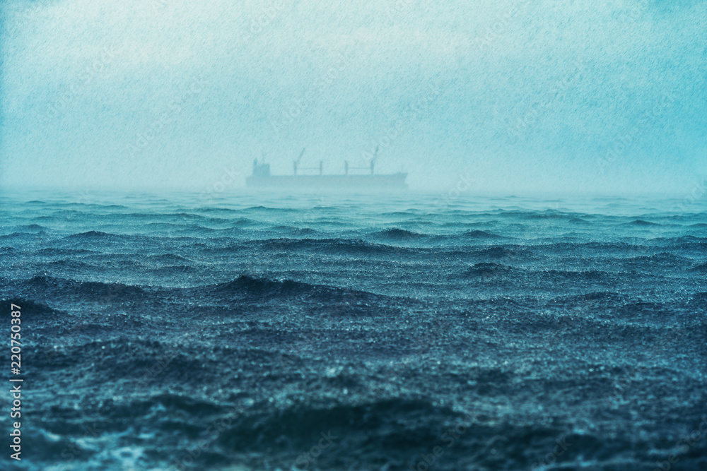 Rain over the sea waves, natural background