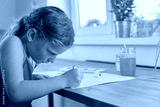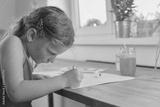 Cute little girl painting picture of house. Selective focus, small DOF
