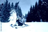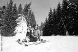 Young handsome man in winter sportswear looking away, wearing big mirrored ski mask