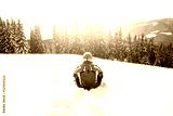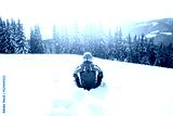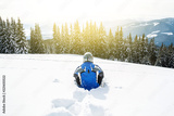 Young handsome man in winter sportswear looking away, wearing big mirrored ski mask
