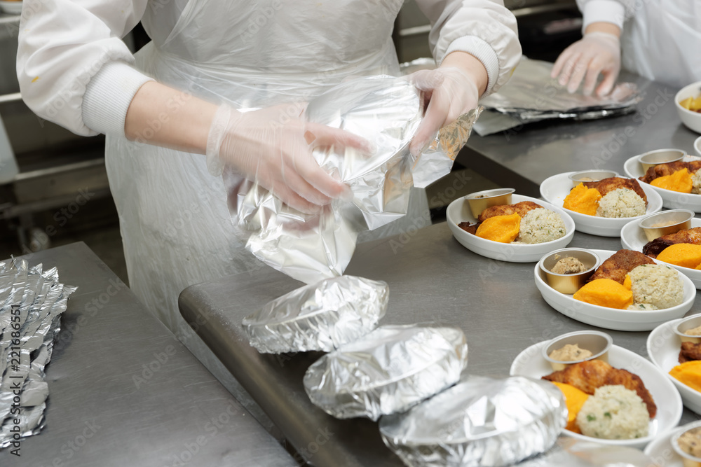 Chef is packing inflight food