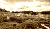 The scenery view of steaming vents in the lunar landscape of Crater of the moon in Taupo, New Zealand.